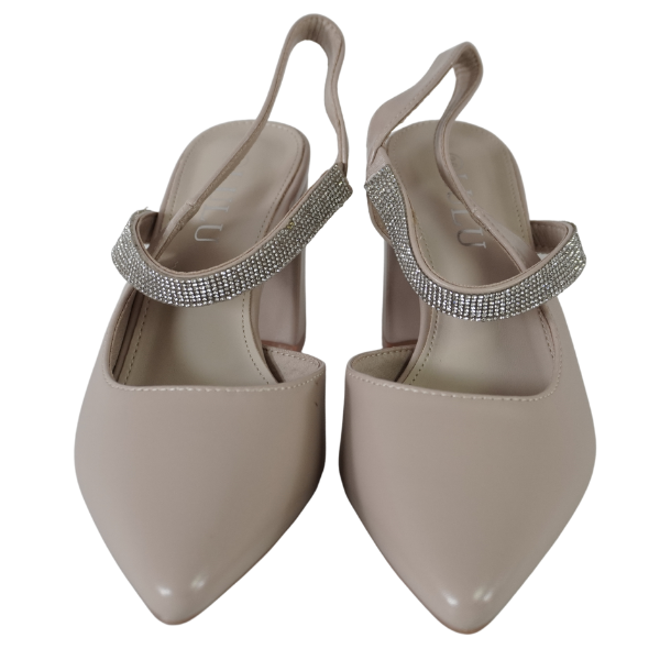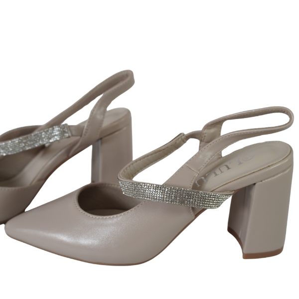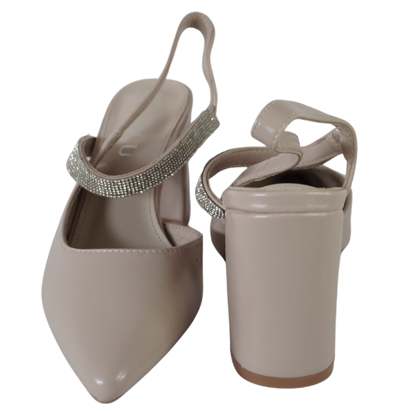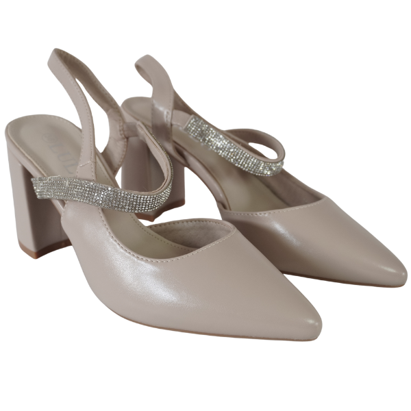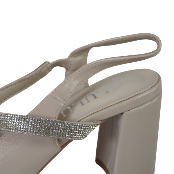 Pantofi cu toc gros și barete cu strasuri - Bej