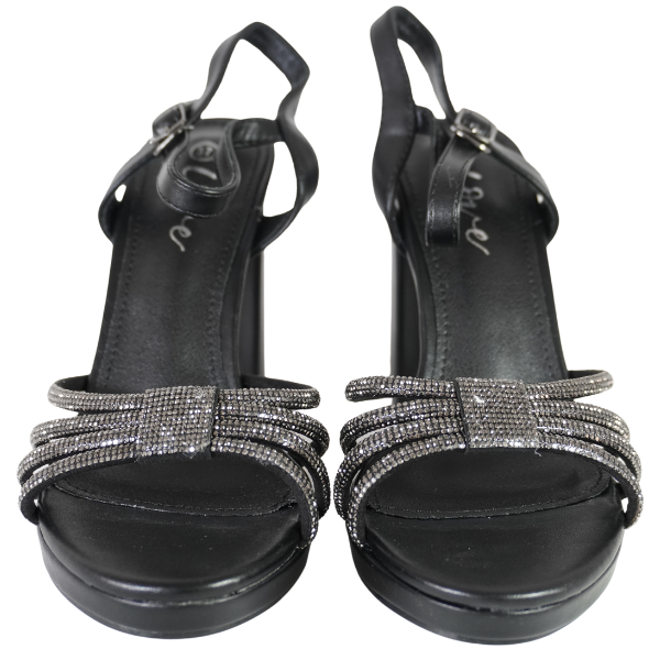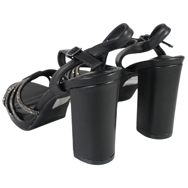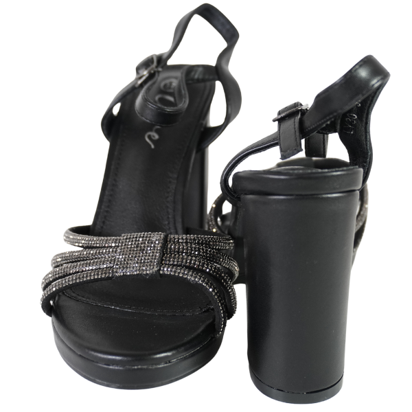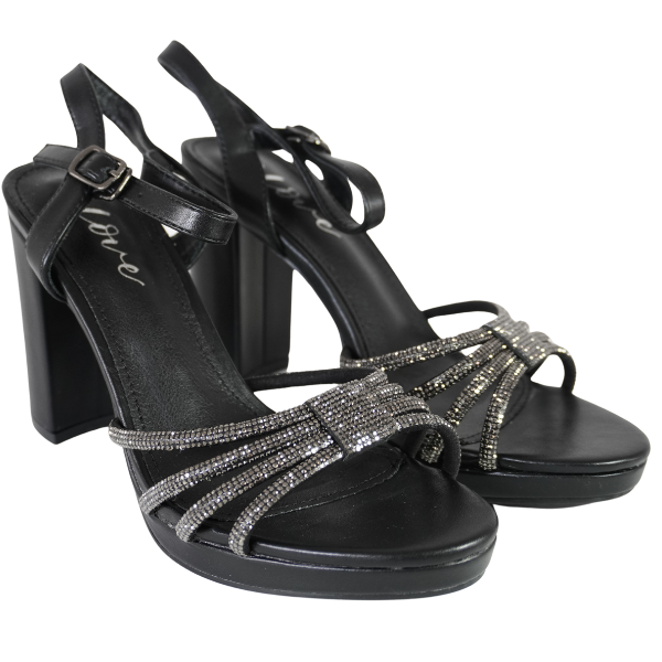 Sandale cu toc gros și barete strălucitoare - Negru